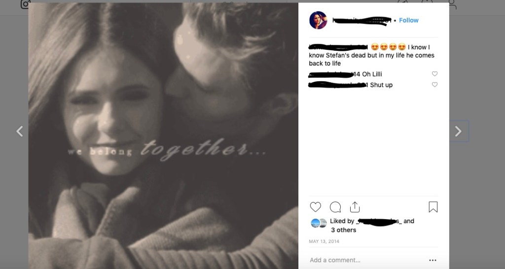 I spent whatever free time I had watching The Vampire Diaries. Obsessing over everything that was happening, and obviously, making an instagram page that only got twenty followers — sad I know. I probably rewatched the TV show fifteen times.